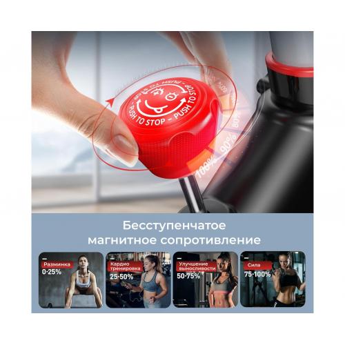 - Спин-байк рассчитан на пользователей весом до 120 кг. Модель оснащёна магнитной системой нагрузки с инерционным весом маховика 10 кг и механической регулировкой. Благодаря бесступенчатой системе изменения сопротивления, вы можете плавно повышать или снижать уровень сложности, выбирая оптимальный режим для кардиотренировки, сжигания жира или развития выносливости.