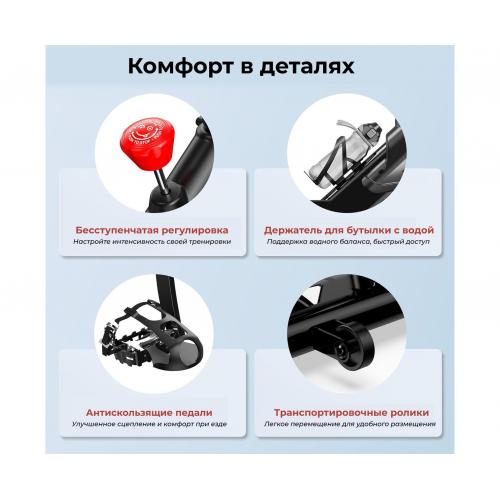 - Сиденье велотренажера регулируется по высоте в диапазоне от 89 см до 104 см — предусмотрено 6 фиксированных уровней, что позволяет подобрать оптимальное положение как для низких, так и для высоких пользователей. Помимо вертикальной регулировки, сиденье можно сдвигать вперёд или назад по горизонтали, что особенно важно для правильной посадки и снижения нагрузки на суставы.