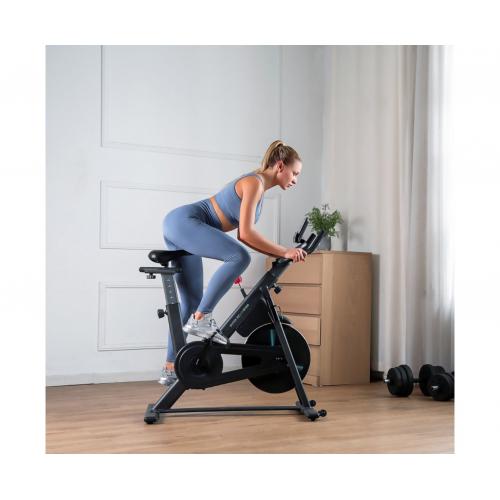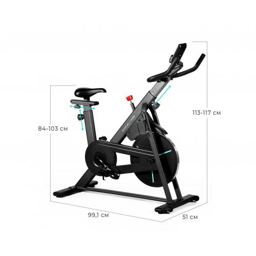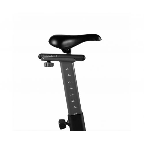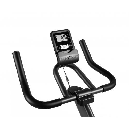 - Спортивное сиденье регулируется не только по высоте и горизонтали, но и углу наклона, таким образом меняя интенсивность тренировки и положение пользователя в седле. Руль регулируется по высоте, делая тренировки комфортнее и продуктивнее. Спин-байк рассчитан на пользователя весом до 110 кг.