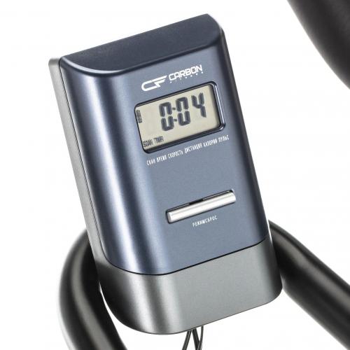 - Монохромный LCD дисплей консоли отображает информацию о времени, скорости, дистанции, калориях, пульсе и оборотах в минуту, обеспечивая вам всю необходимую информацию о тренировке. Спин-байк CARBON FITNESS SB 400 предусматривает ручной режим и быстрый старт, что позволяет использовать тренажер как профессионалам, так и новичкам. Языки интерфейса - русский и английский.