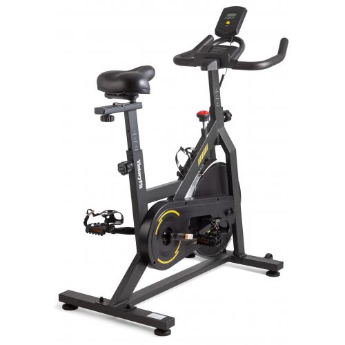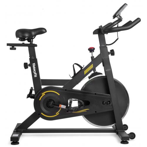 Спинбайк VictoryFit VF-S121 — тренажер является эффективным помощником при борьбе с лишним весом, а также способствующим укреплению кардиосистемы. Инерционная система нагрузки включает в себя маховик, предусмотрено изменение уровней нагрузки за счет колодки, прижимающейся к маховику. Наряду с регулировкой рулевого блока, настраивается высота и глубина посадки сиденья. Высота сиденья регулируется от 86-105 см от пола. В комплекте с тренажером поставляется компьютер, отображающий время, скорость, дистанцию, затраченные калории, расстояние.