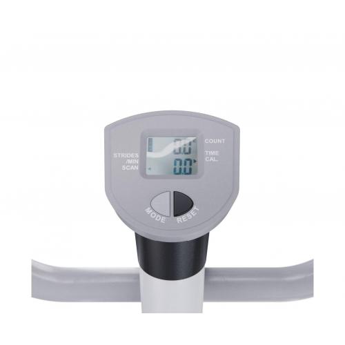 Компьютер: время, общее количество шагов за тренировку, ритм (шагов в минуту), калории, скан.