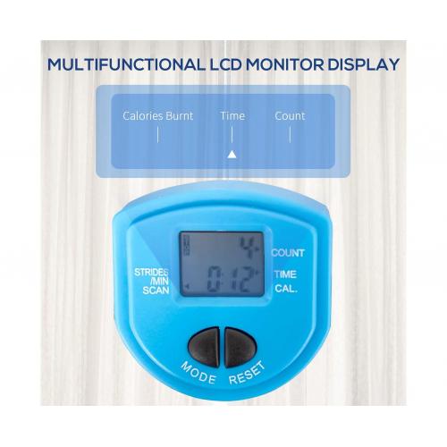 - Монохромный LCD-дисплей отображает основные параметры тренировки: время, количество шагов, расход калорий, темп и функцию сканирования. Это помогает контролировать интенсивность занятий и отслеживать прогресс. Для работы дисплея используется 1 батарейка типа AAA (1.5 В) — в комплект не входит.