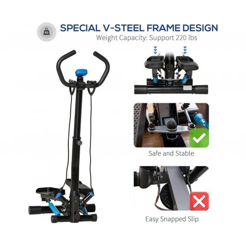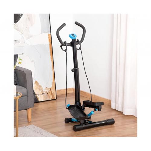 - Благодаря компактным размерам министеппер легко разместить даже в небольшой квартире. Современный черно-синий дизайн органично впишется в любой интерьер.