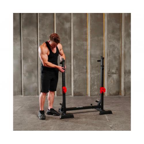 Многофункциональная стойка для штанги 3-в-1: позволяет легко выполнять различные упражнения, включая жим лежа, жим от плеч, приседания, подъемы над головой, упражнения со штангой, отжимания на брусьях, подтягивания, отжимания. Высота регулируется от 109,7 до 181,9 см, 15 уровней; а ширина от 71,8 до 122,2 см, 4 уровня.