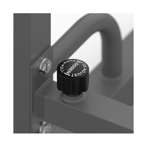 - Высота брусьев и ширина стойки легко регулируется без дополнительных инструментов. 12 уровней на верхних ручках и 8 уровней - на нижних. Внутренняя ширина регулируется в диапазоне от 54 до 99 см.
