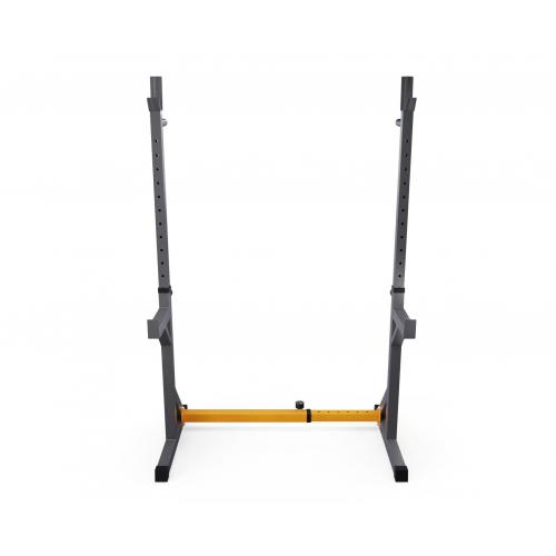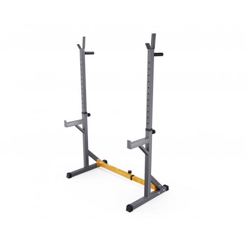 - Устойчивое основание стойки для приседаний из высокопрочной профильной трубы 50 х 50 х 1,5 мм выдерживает динамическую нагрузку до 150 кг (динамическая нагрузка – нагрузка на элементы конструкции в движении). Подходит для выполнения полного спектра упражнений со штангой: от приседаний и становой тяги до жима лежа.
