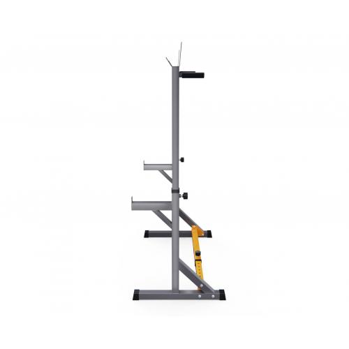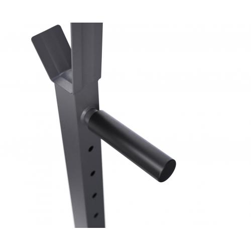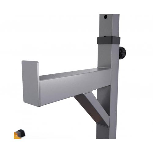 - Высота держателей под штангу легко регулируется без дополнительных инструментов при помощи ручки. Держатели под штангу регулируются по высоте на 11 уровней в диапазоне от 102 до 162 см. Длина посадочного места нижней стойки 25 см.