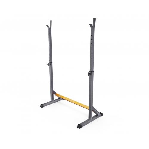 - Устойчивое основание стойки для приседаний из высокопрочной профильной трубы 50 х 50 х 1,5 мм выдерживает динамическую нагрузку до 150 кг (динамическая нагрузка – нагрузка на элементы конструкции в движении). Подходит для выполнения полного спектра упражнений со штангой: от приседаний и становой тяги до жима лежа.