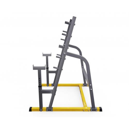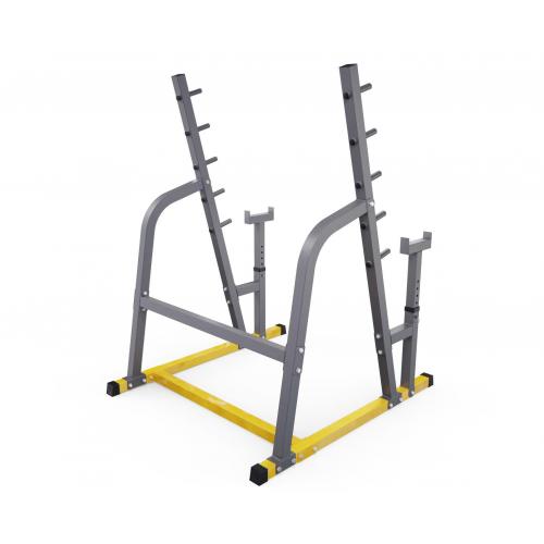 - Устойчивое основание стойки для приседаний из высокопрочной профильной трубы 50 х 45 х 1,5 мм выдерживает динамическую нагрузку до 250 кг (динамическая нагрузка – нагрузка на элементы конструкции в движении). Подходит для выполнения полного спектра упражнений со штангой: от приседаний и становой тяги до жима лежа.