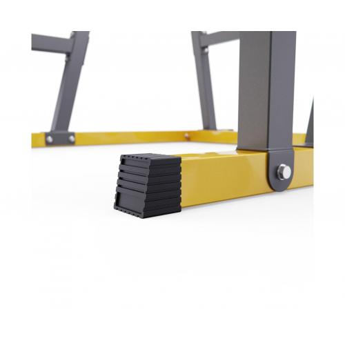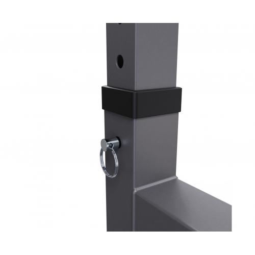 - Высота держателей под штангу легко регулируется без дополнительных инструментов при помощи ручки. Держатели под штангу регулируются по высоте на 6 уровней. Держатели у стойки для жима установлены под углом для безопасного подъема и возврата штанги на место. Нескользящие ножки надежно устанавливаются на полу и не царапают поверхность.