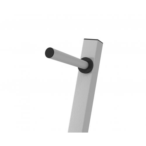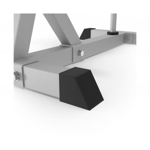 Стойка выдерживает нагрузку до 200 кг, на ней можно хранить диски с посадочным отверстием 26 мм. Надежность стойки обеспечивает профиль рамы, выполненный из высокопрочной стали.