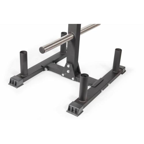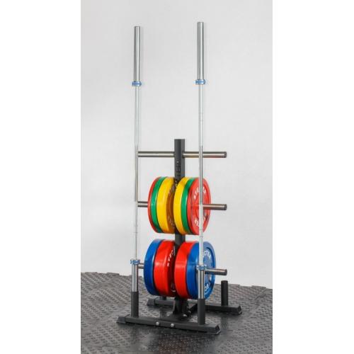 Стойка для хранения дисков штанги классической конструкции – лучшее решение для вашего зала. Устойчивое основание представляет собой конструкцию Н-образной формы. К основанию крепится вертикальная опора, в которую устанавливаются поперечные трубы из высококачественной нержавеющей стали диаметром 50 мм. Именно на них хранятся диски для штанги олимпийского стандарта. Так же на стойке располагаются 4 места для хранения грифов штанги олимпийского стандарта (с диаметром втулки 50 мм).