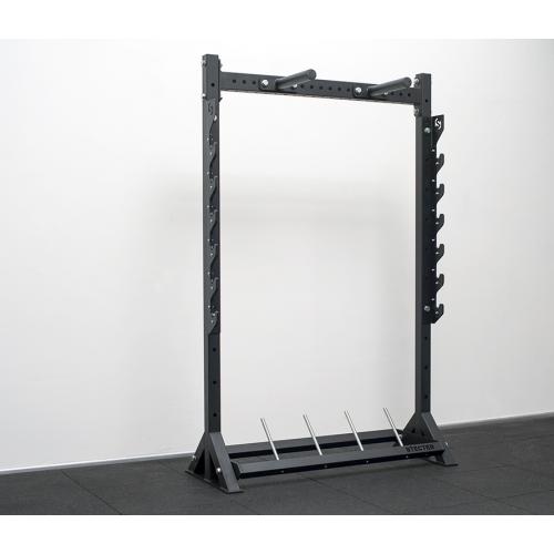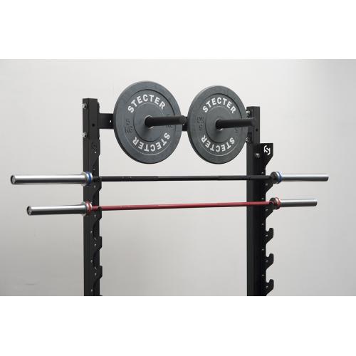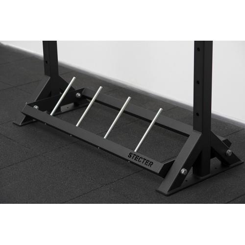 На рынке много разновидностей дисков для штанги: чугунные/металлические блины, соревновательные диски, бамперные блины. Все они имеют различную толщину и не совсем удобно их хранить в отсеках с фиксированной шириной. Компания STECTER предлагает уникальную конструкцию полки. Она имеет специальную перфорацию. В данные отверстия устанавливаются специальные разделительные прутки. Вы можете их переставлять и сами выбирать оптимальную ширину отсеков для каждого вида дисков, либо совсем убрать и использовать полку без разделения на отсеки.
