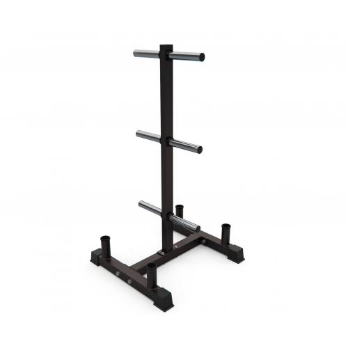 Стойка для хранения дисков и грифов DFC D875. Максимальная нагрузка до 100 кг, профиль основной рамы 50х50х2 мм. Подходит для дисков диаметром 26 мм, длина посадочного места 22,5 см. Расстояние между держателями дисков составляет 48 см в высоту.