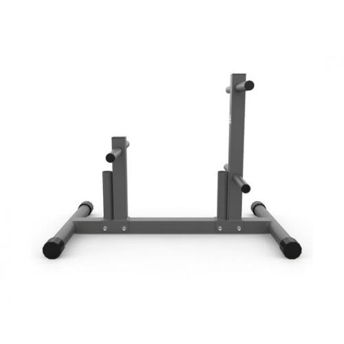 Стойка выдерживает нагрузку до 100 кг, на ней можно хранить диски с посадочным отверстием 25 и 26 мм и грифы диаметром до 29 мм. Надежность стойки обеспечивает профиль рамы 40 х 40 х 1,2 мм, выполненный из высокопрочной стали.