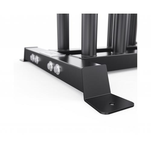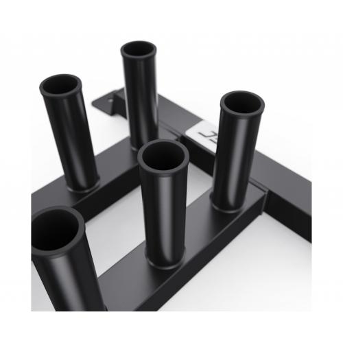 - Диаметр посадочных труб составляет 50 мм, что соответствует стандарту олимпийских грифов. Стойка выдерживает максимальную нагрузку до 250 кг, обеспечивая безопасное хранение тяжелых спортивных снарядов.