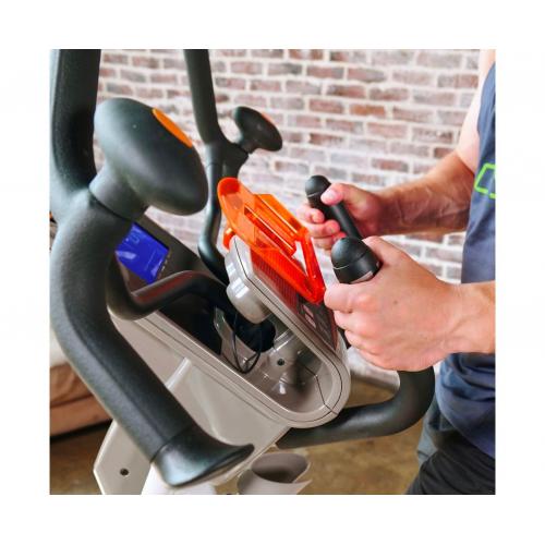 - Кардио кросс-станция оборудована электромагнитной системой нагружения, обеспечивающей сверхточную регулировку нагрузки.
