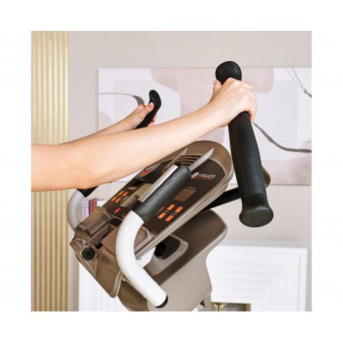 Главное достоинство станция YOWZA 950 в том, что данная модель позволяет сразу тренировать мышцы как верхней, так и нижней части тела. Это достигается благодаря подвижным педалям и двигающимся рукояткам. Пользователь во время занятия совершает не только шаги по эллиптическому радиусу, но и круговые движения руками, нагружая при этом грудную клетку и мышцы пресса.