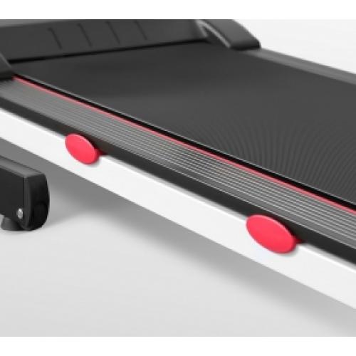 Двигатель с мощностью в 1,75 л.с., разработанный американской компанией LEESON, позволяет беговой дорожке разгонять скорость до 12 км/ч, менять уровень наклона от 0 до 15 % и выдерживать вес пользователя до 120 кг. Размер бегового полотна 122*43 см считается наиболее оптимальным для комфортных занятий людей до 2-х метров ростом.