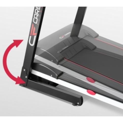 Беговая дорожка в сложенном состоянии не занимает много места, достаточно освободить 68 см в длину и 70 см в ширину для хранения тренажера. Система складывания в формате двухфазной гидравлики (Easy Dropᵀᴹ) обеспечивает безопасность для пользователя и плавное опускание деки.