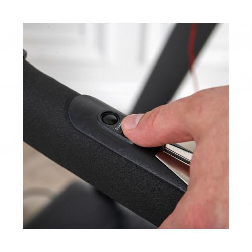 - На поручнях так же расположены "быстрые кнопки" - это кнопки запуска и остановки бегового полотна, а так же кнопки изменения скорости. Это позволяет не отрывать руки с поручней во время занятий не тренажере.