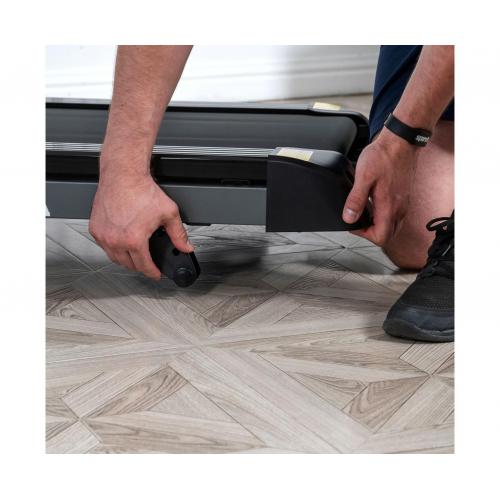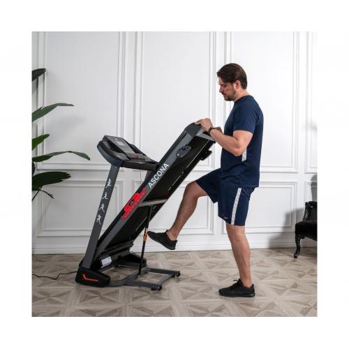 - Дорожка имеет складную конструкцию для экономии жизненного пространства с помощью гидроцилиндра. И встроенные колеса для перемещения дорожки после тренировки.
