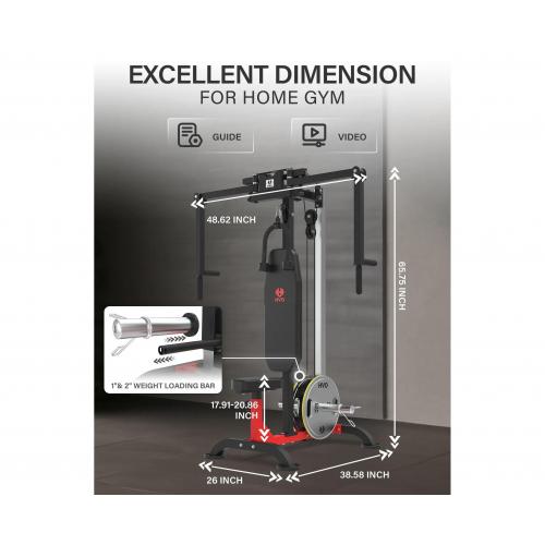 - Тренажер сведение/разведение рук, верхняя тяга DFC D2042A— надёжный домашний тренажёр для полноценной силовой тренировки всех групп мышц. Конструкция включает скользящий противовес, тросовые системы для грудного блока и верхней тяги, а также прочные крепёжные элементы.
