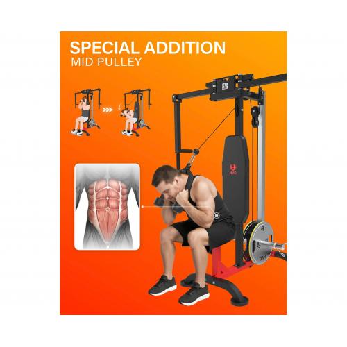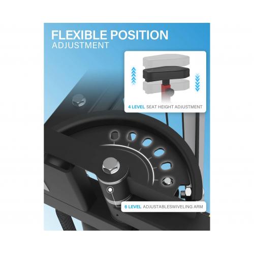 - Тренажер оснащён утолщённым сиденьем с 4 уровнями регулировки и рукоятками с 6 уровнями регулировки, что позволяет точно подобрать рабочую амплитуду и комфортное положение в зависимости от роста и требований пользователя. В комплект входят трос для бицепса и пружинные зажимы для надёжной фиксации дисков при тренировках.