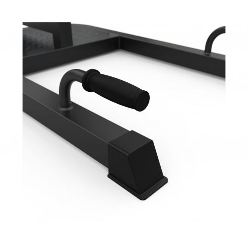 Регулируемые по высоте валики длиной 75 см позволяют настроить тренажер под любой рост и уровень подготовки. Высота валиков регулируется на 4 уровня от 13 до 23 см от пола.