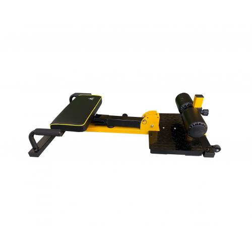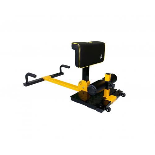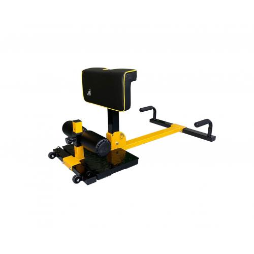 Компактный тренажер Sissy Squat идеально обеспечивает изолированную нагрузку. Стопы нужно зафиксировать под валиками, голени прислонить к подушке и далее делать максимально глубокие приседания, с отягощением либо без него.