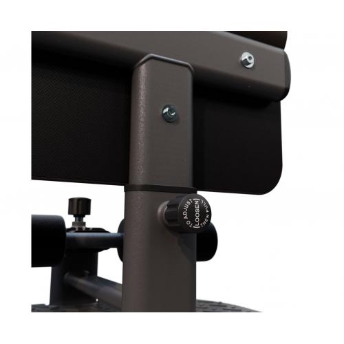 - Валики тренажера регулируются по длине на 7 уровней, позволяя адаптировать устройство под индивидуальные параметры тела. Это обеспечивает комфорт и безопасность тренировок. Благодаря регулировке высоты упора с подушкой на 6 уровней, спортсмены могут усложнять или упрощать упражнения, постепенно увеличивая нагрузку на мышцы.