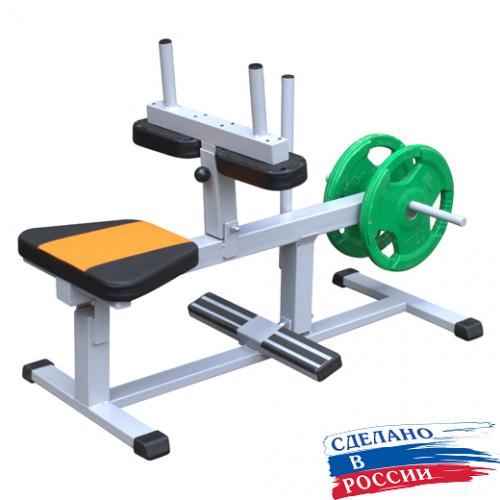 Тренажер ПФ-24, профессиональный предназначен для глубокой проработки мышц голени (двуглавой и камбаловидной) в положении сидя. За счет различной постановки стоп можно добиться нагрузки на разные пучки и части мышц голени.