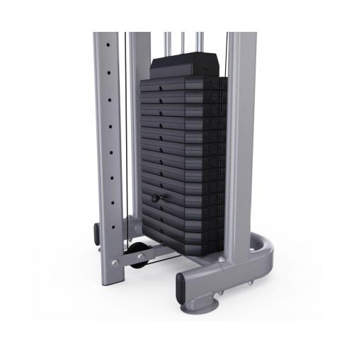 - Силовые стеки весом по 90 кг входят в комплектацию, а вес каждой пластины равен 6 кг. Плавность хода стеков обеспечивают ролики на подшипниках. Конструкция тренажёра выполнена из высококачественной стали и обеспечивает его устойчивость и надёжность.