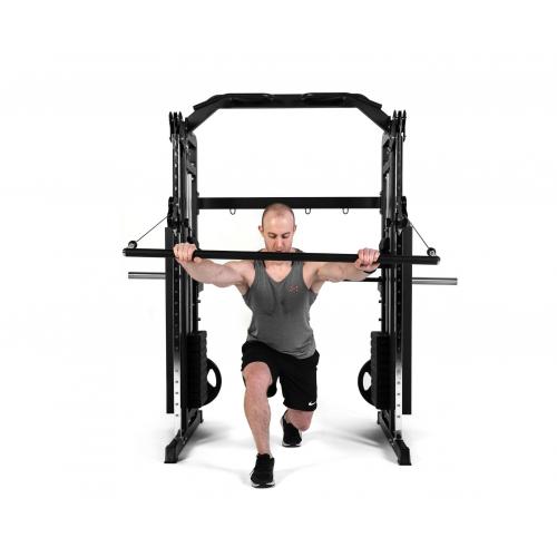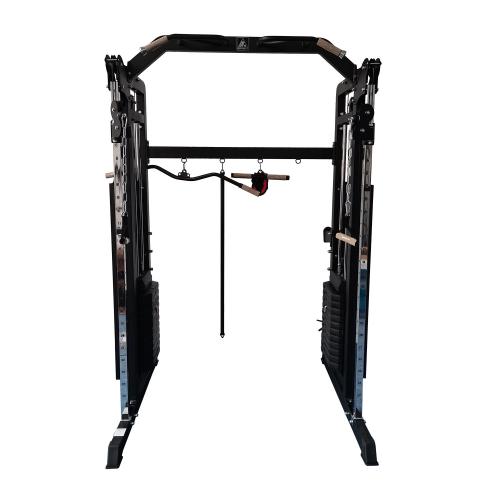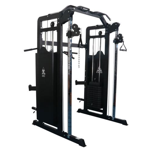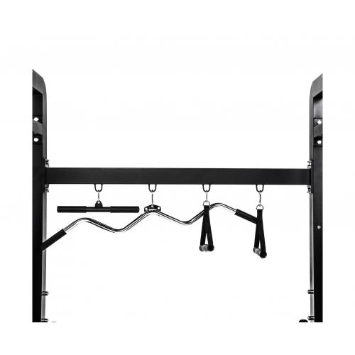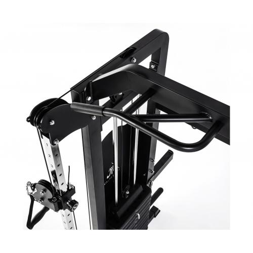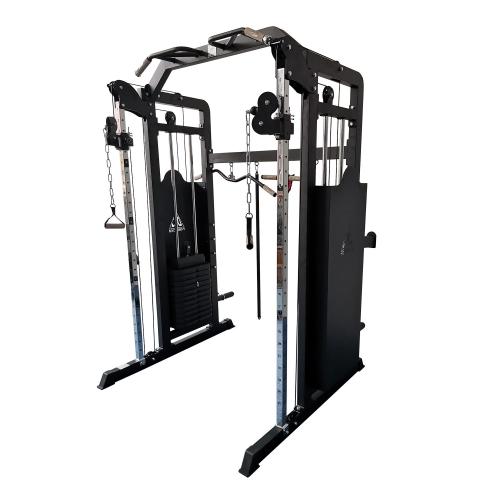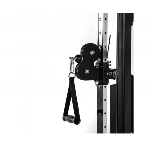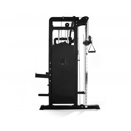 - Силовой тренажер (кроссовер) со встроенными весами. Позволяет отлично прорабатывать мышцы верхней части тела благодаря множеству упражнений. Каждый блок с роликами регулируется по высоте тренажера.