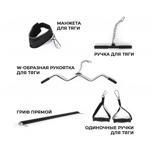 - Большой выбор различных грифов и ручек для занятий на тренажере.