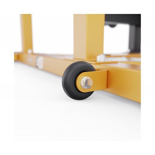 - Конструкция выдерживает вес до 300 кг, а максимальная нагрузка на штангу до 200 кг. Каркас выполнен из прочной стали с профилем 70 х 50 х 2 мм, что обеспечивает высокую устойчивость даже при максимальной нагрузке. Размер тренажера в рабочем виде составляет 116,3 х 127,4 х 143,2 см, что делает его устойчивым и удобным для выполнения упражнений.