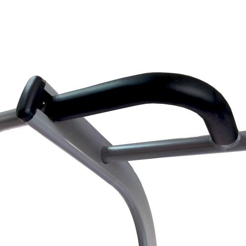 Спинка и специальные упоры для локтей дополнены двумя вертикальными рукоятками для максимального комфорта выполнения упражнений для пресса. А с помощью покрытых уретановыми пластинами подставок, вы легко сможете занять исходное положение в упоре на локтях, не рискуя получить травму.