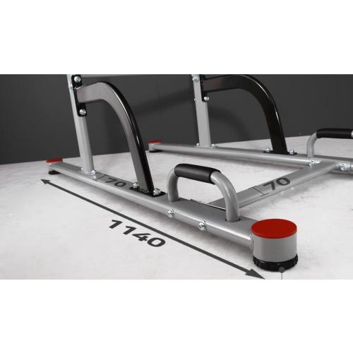 Вынесенные вперед на значительное расстояние брусья не стесняют спортсмена в выборе положения для выполнения отжиманий. Их удобно будет делать, как находясь лицом к тренажеру, так и спиной к нему.
