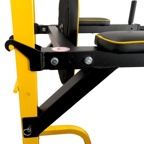 Брусья с подлокотниками можно отрегулировать по высоте в трех положениях. Или снять их полностью, и в этом случае они не мешают выполнять подтягивания.