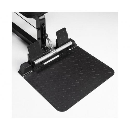 - Платформа для упора выполнена из металла толщиной 3,2 мм. Регулировочная пластина ролика имеет 4 уровня. Сиденье изготовлено из ПВХ с мягкой подкладкой из регенерированного хлопка и деревянного основания, что делает его комфортным и стойким к износу.