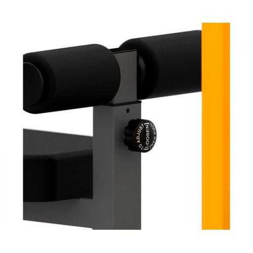Упор для ног с валиками регулируется по высоте на 7 уровней. Рифлёная платформа регулируется по длине на 6 уровней. Помимо широкого спектра регулировок, оба снаряда, поставляющихся в комплекте, съёмные. Все эти свойства помогут подстроить DS15 под нужды и габариты любого пользователя.