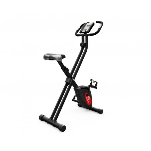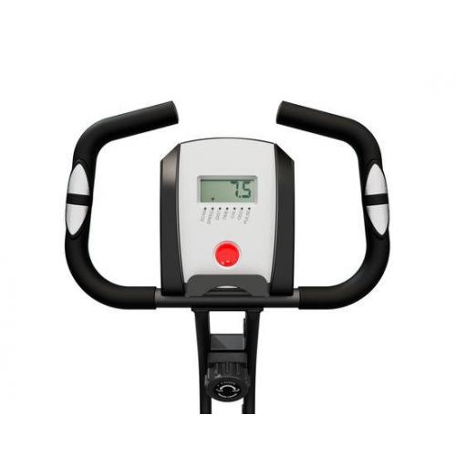 - Конструкция велотренажера складная, что позволяет легко его хранить и транспортировать. Тренажер оборудован компенсаторами неровностей пола для стабилизации и карманом для хранения мелких предметов.