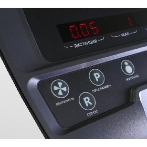 Тренировочный компьютер представлен многофункциональным LED дисплеем с точечной матрицей профессионального уровня. Основной экран дополняют 7 небольших буквенно-цифровых LED-дисплея с красной подсветкой. На экран компьютера выводятся все основные данные – время, скорость, дистанция, уровень нагрузки, калории, ватты, темп, фитнес тест, пульс и жироанализатор. В программный пакет входят 12 предустановленных программ, в которых используются различные виды тренировок. Помимо предустановленных программ, можно воспользоваться самостоятельно регулируемым ручным режимом, а также создать собственную программу в одном из 4-х пользовательских режимов. 3 пульсозависимые программы отвечают за тренировку тех пользователей, которым важно контролировать верхние пределы частоты сердечного ритма. Еще одна функция - жироанализатор Body Fat - даст оценку параметрам, связанным с весом. Плюс ко всему есть Ватт-программа.