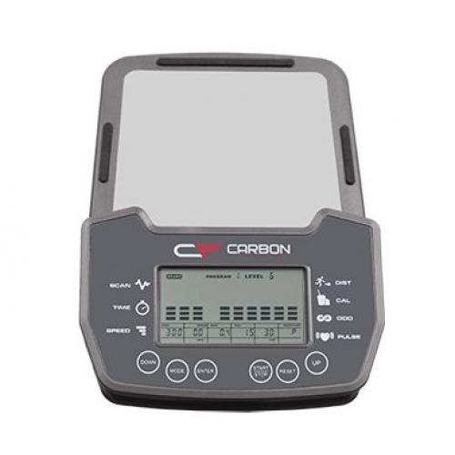 Многофункциональный LCD-дисплей представляет собой небольшой компьютер и имеет "на борту" массу полезного функционала. На выбор представлены 13 разноплановых встроенных программ, в которых используются различные виды тренировок - снижение веса, сжигание жира, выносливость, подъем в гору, интервальная тренировка, циклическая тренировка, аэробная тренировка, фартлек, увеличение нагрузки, равнина, долина, плато, холмы. Для каждой из встроенных программ можно выставить цели в виде дистанции, времени и количества сжигаемых калорий - при достижении одного из этих показателей тренировка завершится. Есть здесь и ручной режим, где пользователь самостоятельно регулирует уровни нагрузки в процессе занятия. На экран компьютера выводятся различные параметры - непосредственно профиль тренировки, время, дистанция, скорость, калории, обороты в минуту, одометр, пульс и Ватты. За показатели пульса отвечают вмонтированные в рукоятки сенсорные датчики пульса.