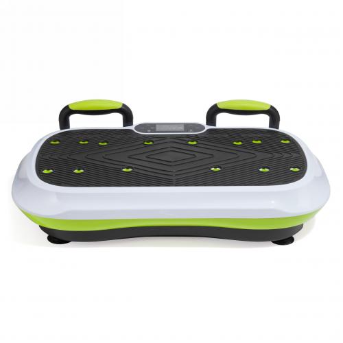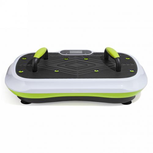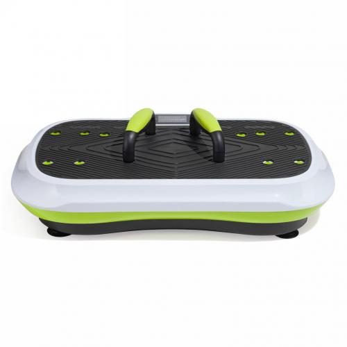 - Виброплатформа VictoryFit VF-M750 – выполнена из ударопрочного пластика, благодаря чему максимальный вес пользователя может достигать 120 кг. Особенность модели – 2 съемные ручки, которые устанавливаются в отверстия на поверхности платформы, чтобы разнообразить тренировки. В комплект также входят 2 эспандера.