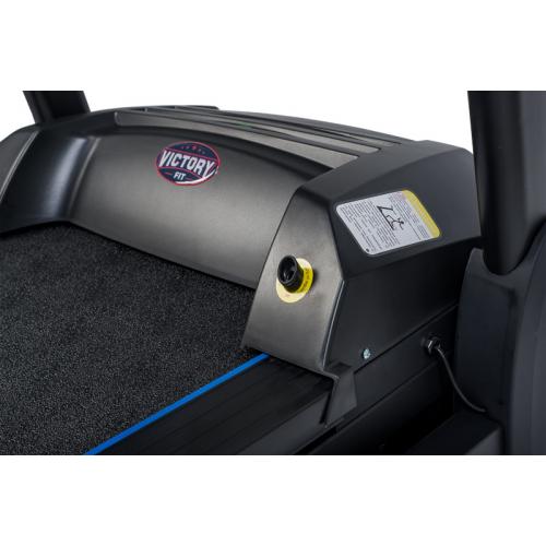 Корпус VictoryFit-730 выполнен в спокойных серо-черных оттенках из прочного матового высококачественного пластика с яркими акцентами на деталях синего цвета. Жидкокристаллический экран имеет также синюю подсветку, гармонирующую с общим обликом дорожки, а расположение программных блоков поможет вам в короткие сроки научиться без проблем управлять этим тренажером.