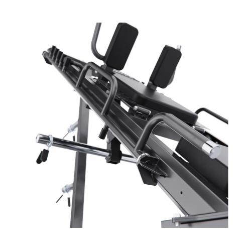 - Благодаря продуманной конструкции, тренажёр позволяет выполнять как классический жим ногами, так и гакк-приседания — альтернативу штанге, но с меньшим риском травм. А возможность тренировки икроножных мышц с 5 уровнями регулировки делает его по-настоящему универсальным.