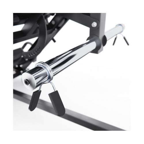 - Максимальная нагрузка на тренажер составляет 400 кг. Прочный профиль рамы (50 х 70 х 2 мм и 50 х 50 х 1,8 мм) обеспечивает устойчивость даже при интенсивных занятиях. Посадочные диаметры держателей — 28–31 мм и 51 мм, под стандартные и олимпийские диски.