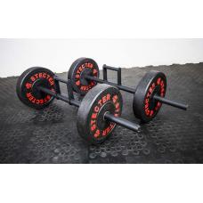 Диаметр грифа составляет 50 мм и идеально подходит под олимпийских классических дисков. Дополнительная противоскользящая насечка на рукоятях, которые расположены ровно посередине грифа, еще больше снижает возможность получения травмы спортсменом.